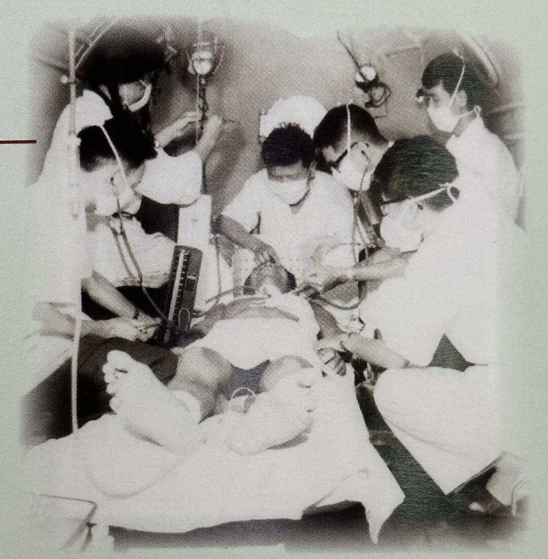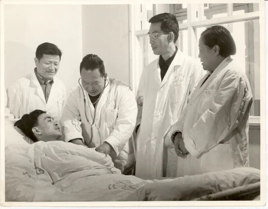 陈本禄(左一)在心血管麻醉领域,他带领团队保障了全国首例大血管转位心房内调转术、全省首例二尖瓣置换术、法洛四联症根治术等多项突破性手术的麻醉任务,更在全省率先引入温血停搏液实施心肌保护,为复杂心外科手术筑牢安全屏障。在针刺麻醉研究中,也取得重要突破。其中,针麻应用于颅脑手术、体外循环下心内直视手术等相关成果于1978年获全国科学大会奖;针麻甲状腺手术的研究于1984年获国家科技进步奖二等奖。
